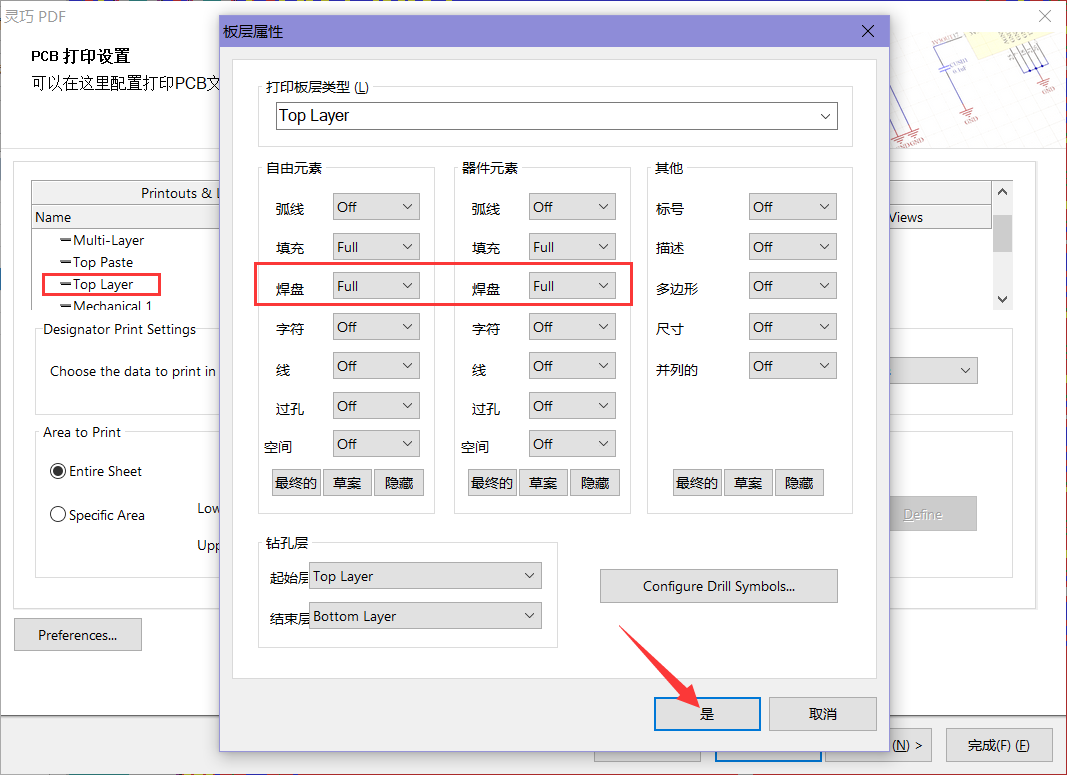 - Top Overlay (显示丝印框和位号图,其他相关的取决于元素显示设置)